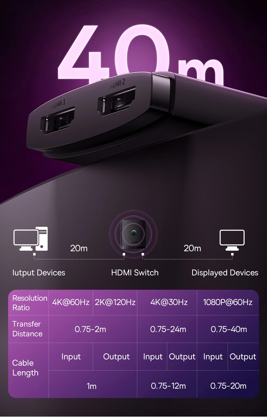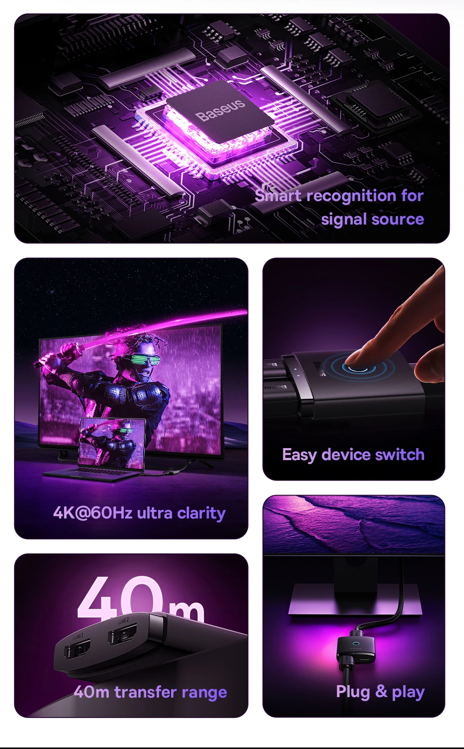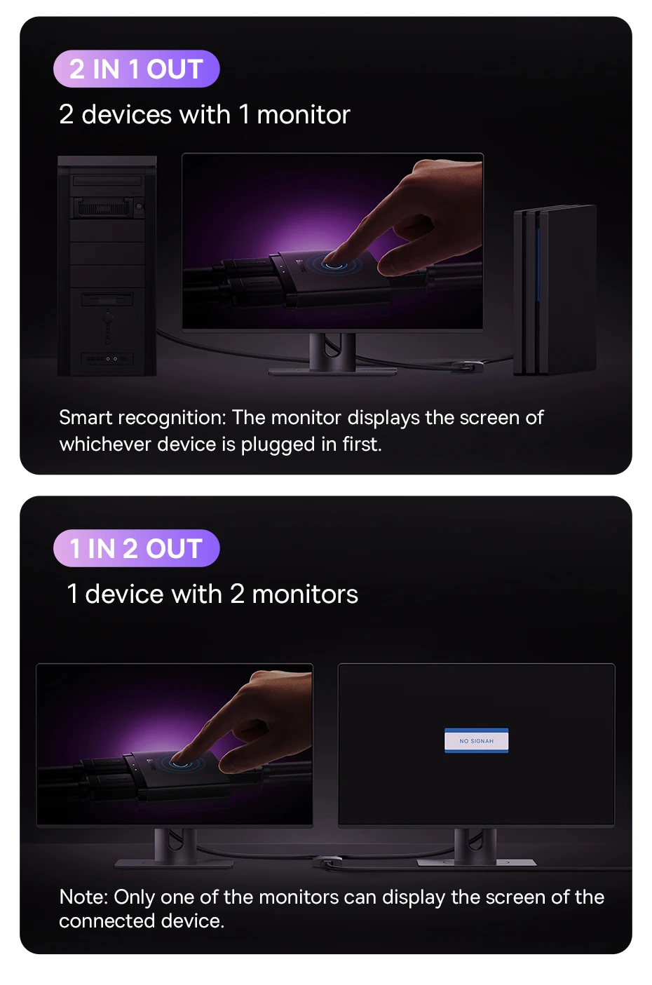 Interruptor bidirecional compatível com HDMI Baseus AirJoy série 2 em 1